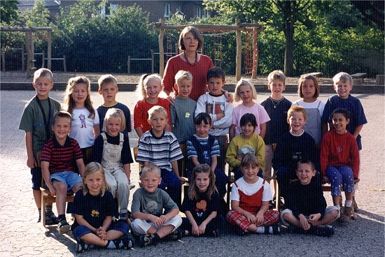 Klasse 1c mit Klassenlehrerin Frau Fasselt (Aug. 2001)